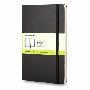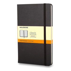 Kvalitný notes v pevných doskách s uzatváraním na gumičku, pútkom na ceruzku a vnútorným vreckom na navštívenky.