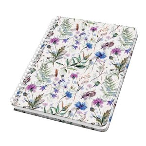Notes v pevných doskách z kolekcie Kataríny Winterovej s ilustráciami kvetín, s uzatváraním na gumičku, vreckom na drobnosti a pútkom na ceruzku.