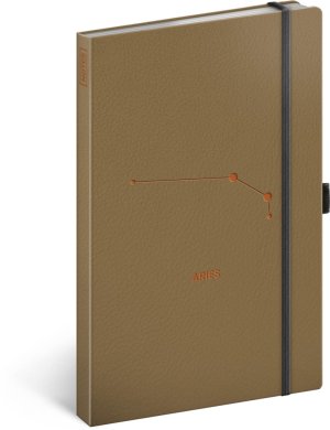 Linkovaný notes v pevných doskách s uzatváraním na gumičku, vreckom na drobnosti a pútkom na ceruzku. 172 strán na žltom papieri.