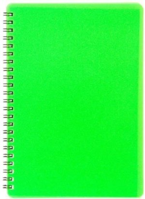 Trendy poznámkový blok v transparentných doskách z polypropylénu s krúžkovou väzbou.