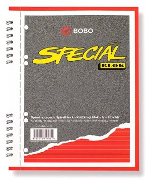 Blok so špirálou po strane s mäkkými doskami Dierovanie pre jednoduché vkladanie do zakladača Stránky sú perforované pre ľahšie odtrhávanie jednotlivých listov 50 listov, 60g/m2