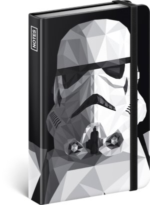 Zápisník s pevnou, v chrbte šitou väzbou v kartónových doskách, obopnutý pružnou páskou proti samovoľnému otváraniu.