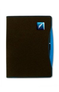 inkovaný notes v pevných doskách s uzatváraním na gumičku, vreckom na drobnosti a pútkom na ceruzku. 172 strán na žltom papieri.