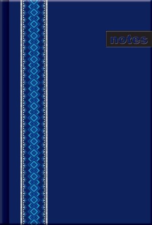 Nedatovaný notes má modro-strieborná razba, obsahuje 208 strán, vnútorné listy krémovej farby s riadkami.