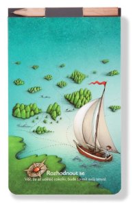 Formát 150 x 90 mm, čistý (nelinkovaný), lepený, ceruzka v bloku, magnet na zadnej strane, špeciálny knižný papier (Holmen book), motív Rozhodnúť sa. br brPoznámkový blok s ceruzkou a magnetom br• Krásna …