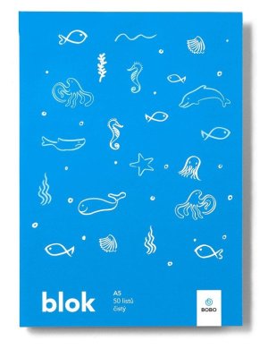 Stredný poznámkový blok A5 s čistými listami a ručne kreslenými motívmi morského sveta bol vyrobený pre všetkých malých i veľkých školákov.