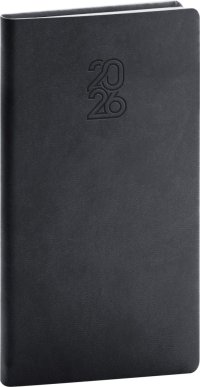 Vreckový diár Aprint 2026 v čiernej farbe.