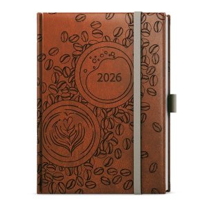 Denný diár v hnedej vivelle s krásnou celoražbou motívu Kávových zŕn Diár v B6 formáte s veľkým priestorom pre poznámky a plánovanie Rozmer: 12 x 16,5 cm Počet strán: 336