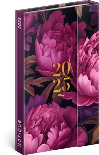 Elegantný vreckový týždenný diár vo výraznom fialovom odtieni.