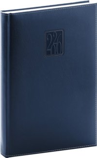 Praktický týždenný diár vo výraznom modrom prevedení s elegantnou šedou gumičkou a pútkom na pero.