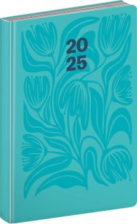 Denný diár Cambio 2025 so vzorom tyrkysových kvetov.