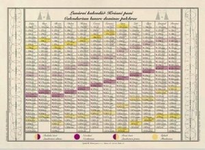 Kalendár obsahuje:priestor na poznámkyobčianske kalendáriumcirkevné kalendáriumfarby liturgických obdobíliturgické čítanie na každý deňlunárnej …