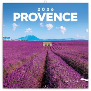 Dvanásť fotografií z levandulí preslávenej krajiny Provence v poznámkovom kalendári so šesťjazyčným kalendáriom.