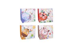 Darčeková taška o veľkosti L 38x38x20 cm Detská. 4 varianty zvieratiek: tiger, slon, ovečka a žirafa.