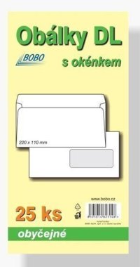 Obálky 220x110 mm, balenie 25 ks. Balenie klasických poštových obálok vo formáte DL.