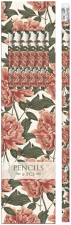 Elegantný set 6 ceruziek Peony s gumou a kvetinovým motívom.