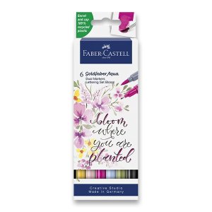 Súprava 6 farieb obojstranného moderného popisovača Goldfaber Aqua Dual Marker Lettering s farbivom na báze vody.