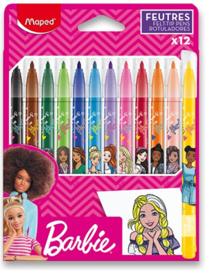 Súprava 12 farebných fixiek Maped s atraktívnym dizajnom obľúbenej bábiky Barbie.