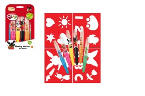Balenie obsahuje 6 farebných fúkacích fixiek s potlačou a 4 farebné papierové šablónky v obľúbených motívoch.