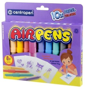 Fúkacie fixky na papier • nové pastelové farby • zdravotne nezávadný atrament • ľahko zmývateľné a vyprateľné • 5 alebo 10 farebných odtieňov • 8 šablón pri balení KK-10 • 1 šablóna pri balení KK-5