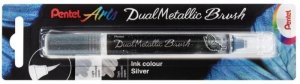 Pentel Arts Dual Metallic Brush popisovač so štetcom black DAX • trblietavá sýta stopa mení farbu podľa použitia na biely alebo čierny papier • štetec s nylonovými vláknami s tekutou, metalickou farbou v zásobníku …