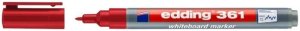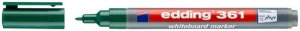Popisovač na biele tabule edding 361 s tenkým hrotom umožní písanie tenkou stopou na všetky neporézne povrchy ako je email či melamín.