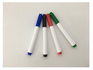 Súprava popisovačov na biele magnetické tabule na alkoholovej báze s okrúhlym hrotom, ktoré sú stierateľné za sucha.