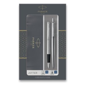 Súprava Duo Set obsahuje guľôčkové pero Parker Jotter Stainless Steel a plniace pero Parker Jotter Stainless Steel.
