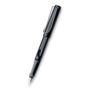 Plniace pero Lamy Safari v prevedení Shiny Black má telo z tvrdeného ABS plastu, nasadzovacie viečko a odpružený kovový klip. Úchopová zóna je ergonomicky upravená, hrot je z nerezovej ocele.