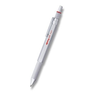 Guľôčkové pero Multipen Rotring 600 Silver 3 v 1 má celokovové šesťboké telo s protišmykovou ryhovanou úchopovou časťou a matne lakované mosadzné telo v kombinácii s doplnkami v danej farbe.