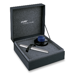 Darčeková kazeta s atramentom a plniacim perom Lamy Studio Brushed Steel.