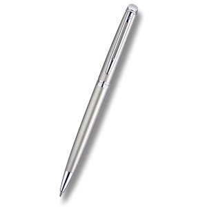 Guľôčkové pero Waterman Expert Deluxe Metalic Stone CT má sivo lakované mosadzné telo a viečko s reliéfnou rytinou vyvedenou leptaním.