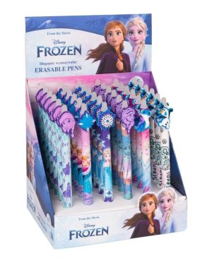 Kolekcia gumovateľných pier s tématikou animovaného filmu Ľadové kráľovstvo. •farba náplne: modrá •šírka stopy: 0,5 mm •stláčacia mechanika s gumou •6 designov
