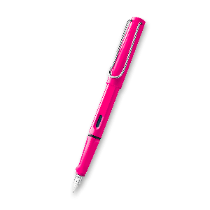 Plniace pero Lamy Safari v prevedení Shiny Pink má telo z tvrdeného ABS plastu, nasadzovacie viečko a odpružený kovový klip. Úchopová zóna je ergonomicky upravená, hrot je z nerezovej ocele.