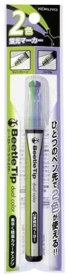 Zvýrazňovač KOKUYO so špeciálnym dvojitým hrotom - jeden popisovač s dvoma farbami v zdvojenom hrote, podľa držania popisovača zvýrazňovania zeleným odtieňom, pootočením o 180 stupňov k dispozícii fialový ...