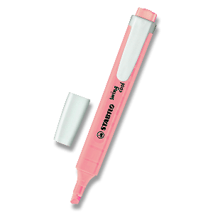 Plochý zvýrazňovač s viečkom vo farbe atramentu v pastelových farbách.