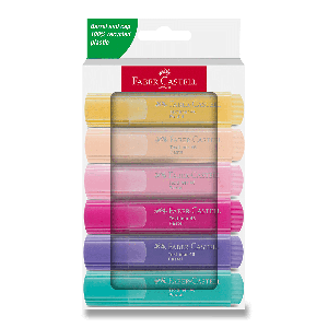 Plochý zvýrazňovač Faber-Caste Textliner 46 v šiestich netradičných pastelových odtieňoch.