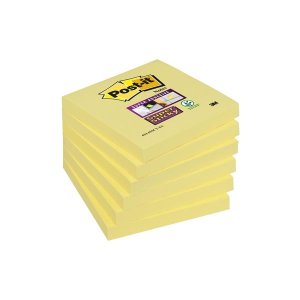 Silne lepiace bločky Post-it Super Sticky v tradičnej žltej farbe Spĺňajú certifikáciu PEFC Bločky balené jednotlivo Vhodné na lepenie vo vertikálnej polohe, napr. na monitor 90 lístkov v bločku