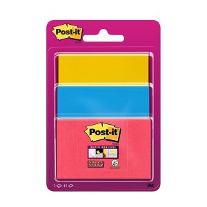Silne lepiace bločky Post-it Super Sticky v tradičnej žltej farbe Spĺňajú certifikáciu PEFC Vhodné na lepenie vo vertikálnej polohe, napr. na monitor Rozmery: 47,6 x 47,6 mm Balenie: 12 x 90 lístkov