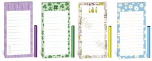 Univerzálne poznámkové lístky, lepené pozdĺž dlhšej strany.