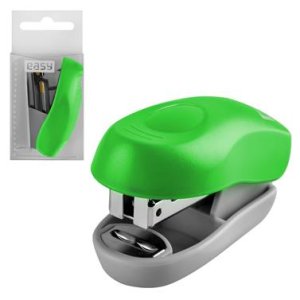 Plastová zelená mini zošívačka v závesnom blistri na 8 listu. (no24/6). 24ks v balení, originál kartón 12x24 ks.