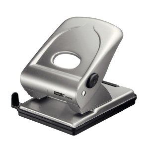 Výkonný kovový dierovač s uzamykateľným ramenom pre ľahké skladovanie Príložník pre všetky štandardné formáty A4, A5, A6 Rozmery: 6,9 x 14,5 x 11,5 cm (š xvxh) Výkon 40 listov