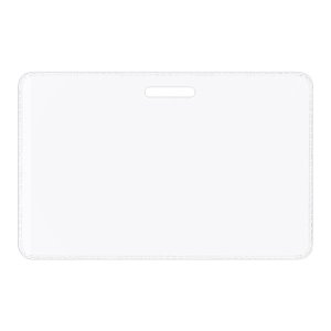 Menovka z číreho tvrdeného PVC, bez klipu Vrátane papierového štítku Dlhý prierez slúži na uchytenie na držiak preukazov či pomocou textilnej šnúry Otvorené puzdro Rozmery: 9,0 x 6,0 cm (š xv)