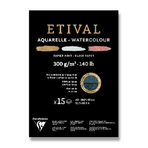 Akvarelový blok Clairefontaine Etival Black Cold Pressed/Rough 300 g má 100% prírodný čierny celulózový papier.