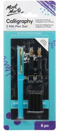 Kaligrafické pero s doplnkami - 1 kaligrafické pero, 2 kaligrafické hroty s gumovými úchytmi (tenký a široký), 4 bombičky s čiernym atramentom a návod s cvičnými listami.