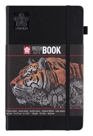 Skicák Sakura 13 x 21 cm s 80 čiernymi listami bezkyselinového papiera 140 g/m2 uchováva všetky vaše výtvory vytvorené tušou, ceruzkou, olejovým pastelom alebo uhlím na jednom mieste.