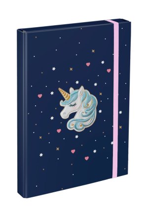• Dosky z tvrdého kartónu na úschovu zošitov a učebníc. • Lesklý lakovaný povrh zvyšuje odolnosť. • Vnútorné vrecko a predný poklop zaistený gumičkou proti vypadnutiu. • Formát A5.