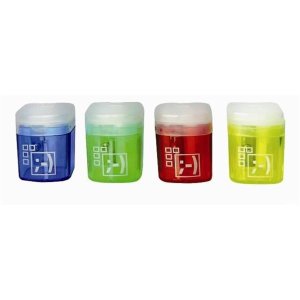 Plastové strúhadlo vybavené nožmi dvoch veľkostí Ostrie pre ceruzky 8 mm a 12 mm Dodávané v mixe farieb So zásobníkom