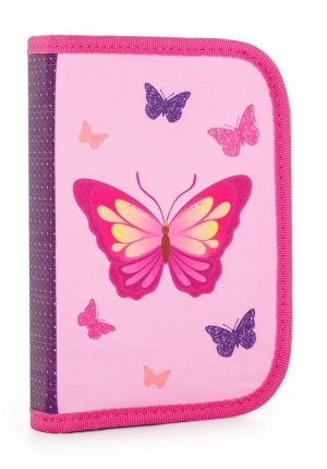 Jednoposchodový školský peračník s 2 chlopňami, prázdny obsahuje 25 gumových pútok na uchytenie písacích potrieb.
