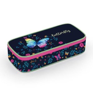 Školské púzdro je vybavené pevnými zipsami, uzatvárateľným vreckom na zips, priehradkou na pravítko a klopou so šiestimi pútkami na písacie potreby.
